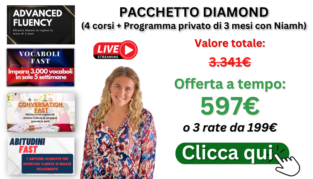 Spoiler: Finalmente è stato rilasciato il nuovo CORSO ADVANCED della English Coach madrelingua Niamh che ti farà diventare fluente in inglese nel parlato!