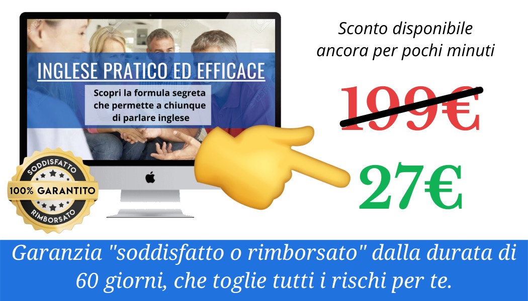 Prendi il tuo posto adesso al nuovo corso "Inglese Pratico ed Efficace" cliccando sul pulsante blu qui sotto.