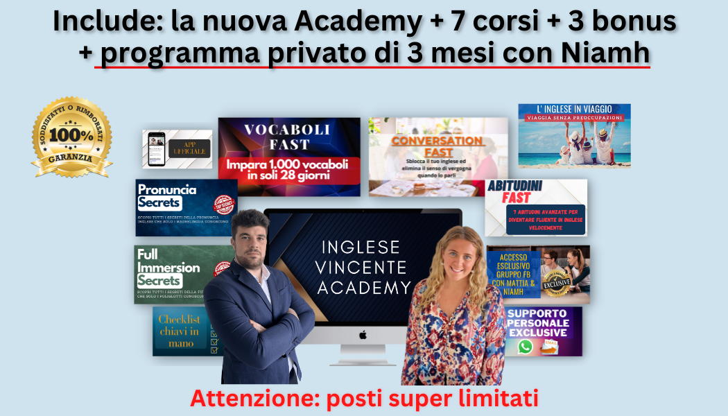 ✅ Inglese Vincente Academy con accesso esclusivo (valore 1.200€)