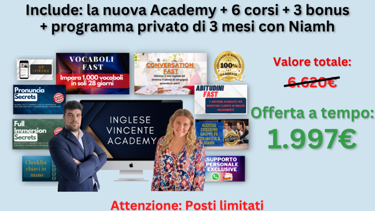 ✅ Inglese Vincente Academy con accesso esclusivo e illimitato (valore 1.200€)