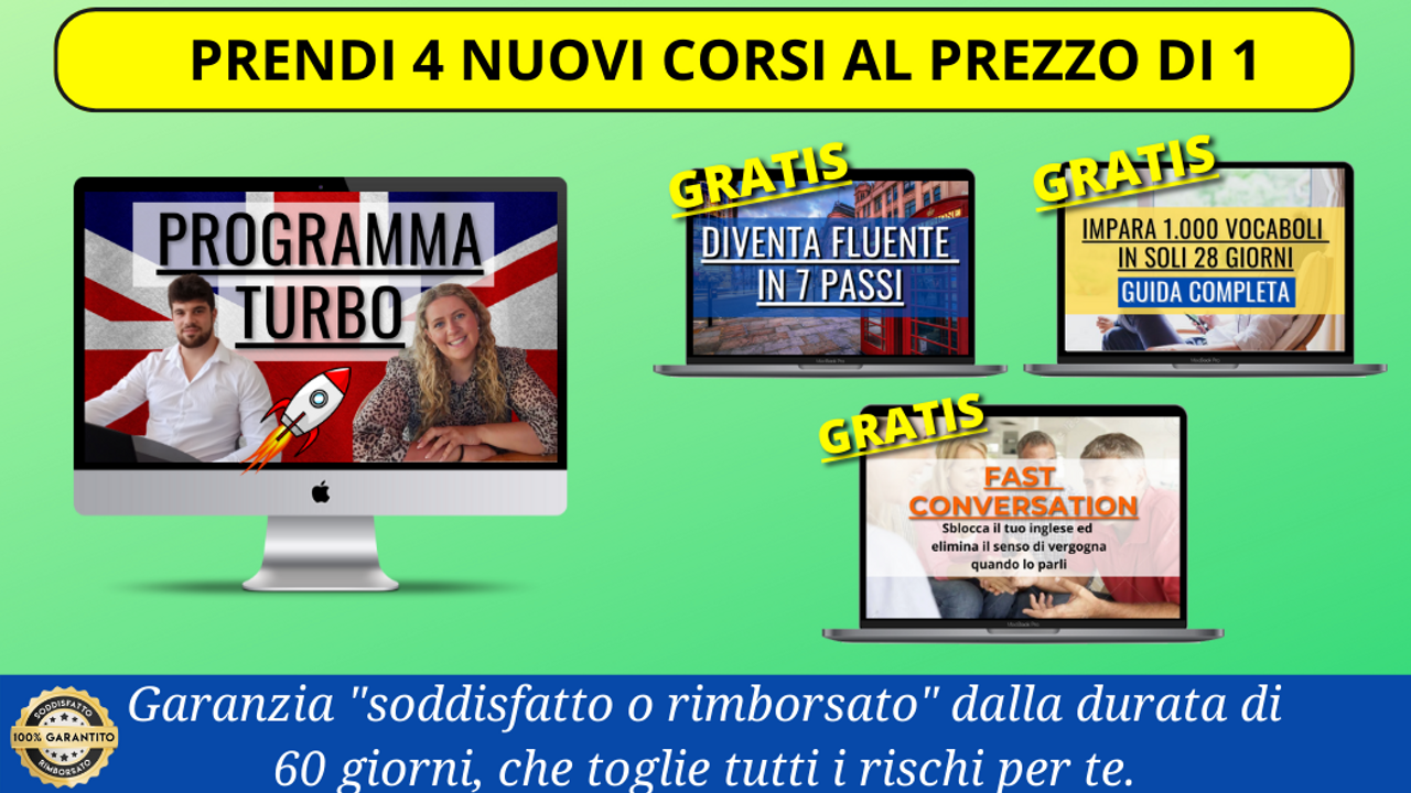 CORSO DIVENTA FLUENTE: "7 semplici passi per diventare fluente in inglese". Obiettivo farti parlare inglese. (valore 200€)