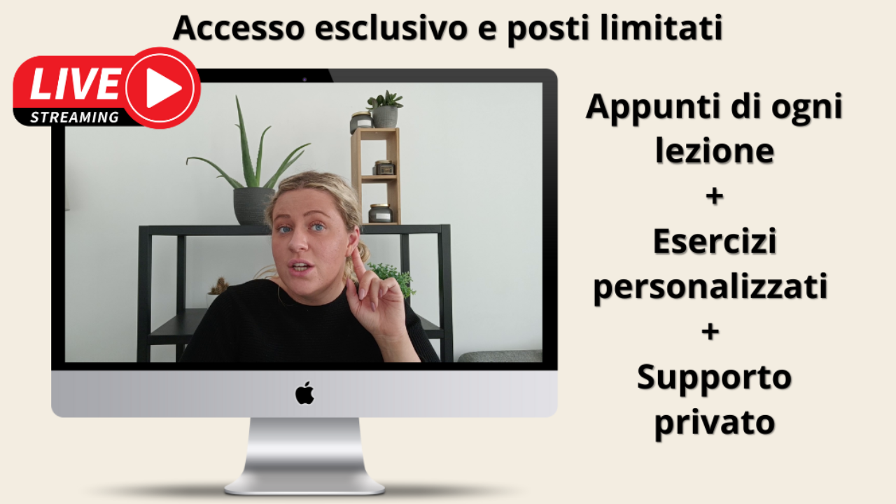 - Una lezione a settimana con Niamh per sbloccare il tuo parlato (12 settimane - 60 minuti a lezione)