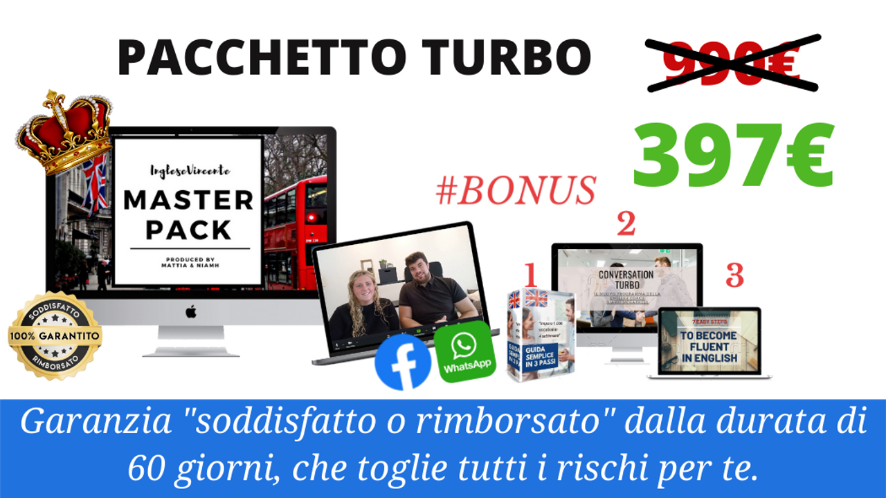 TURBO CONVERSATION: “Sblocca il tuo inglese ed elimina il senso di vergogna quando lo parli” (valore 350€):