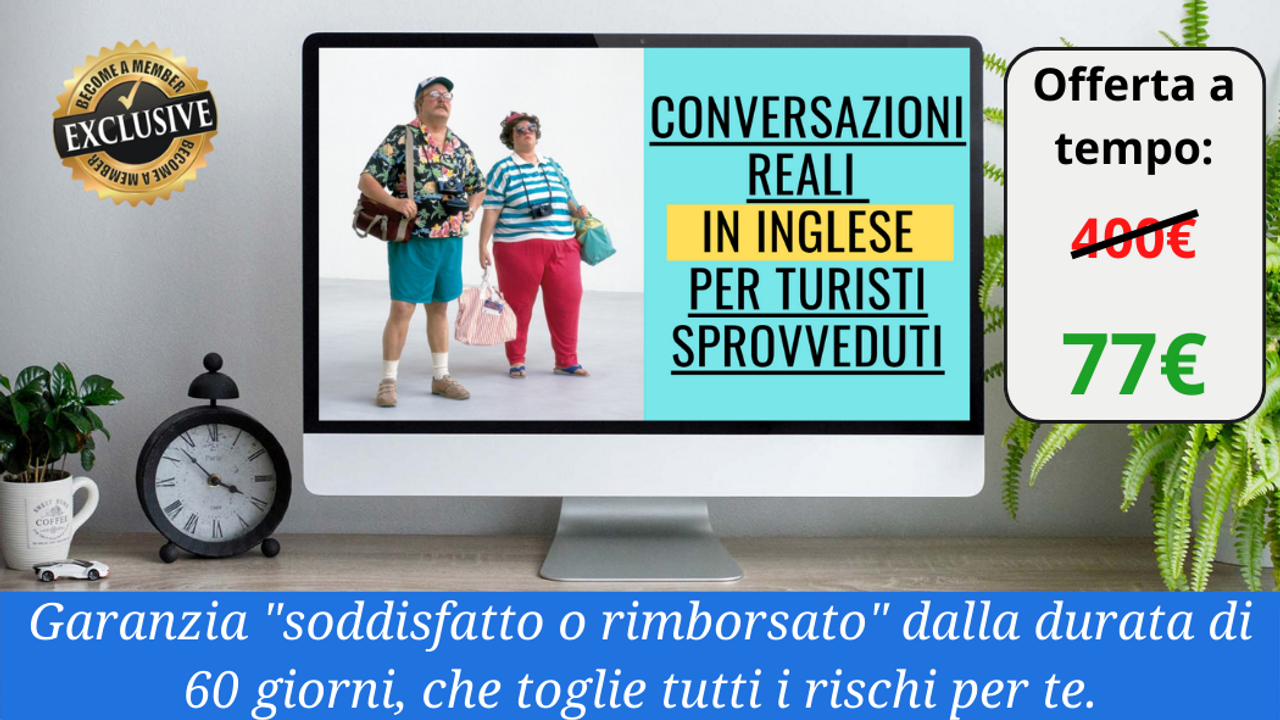 ACCESSO IMMEDIATO A "CONVERSAZIONI REALI IN INGLESE PER TURISTI SPROVVEDUTI" (valore 400€). Parla inglese in vacanza.