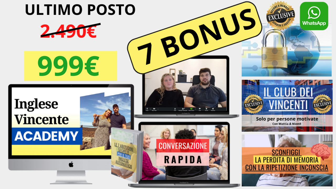 BONUS CONVERSAZIONE RAPIDA: Sblocca il tuo inglese ed elimina il senso di vergogna quando lo parli” (valore 250€)