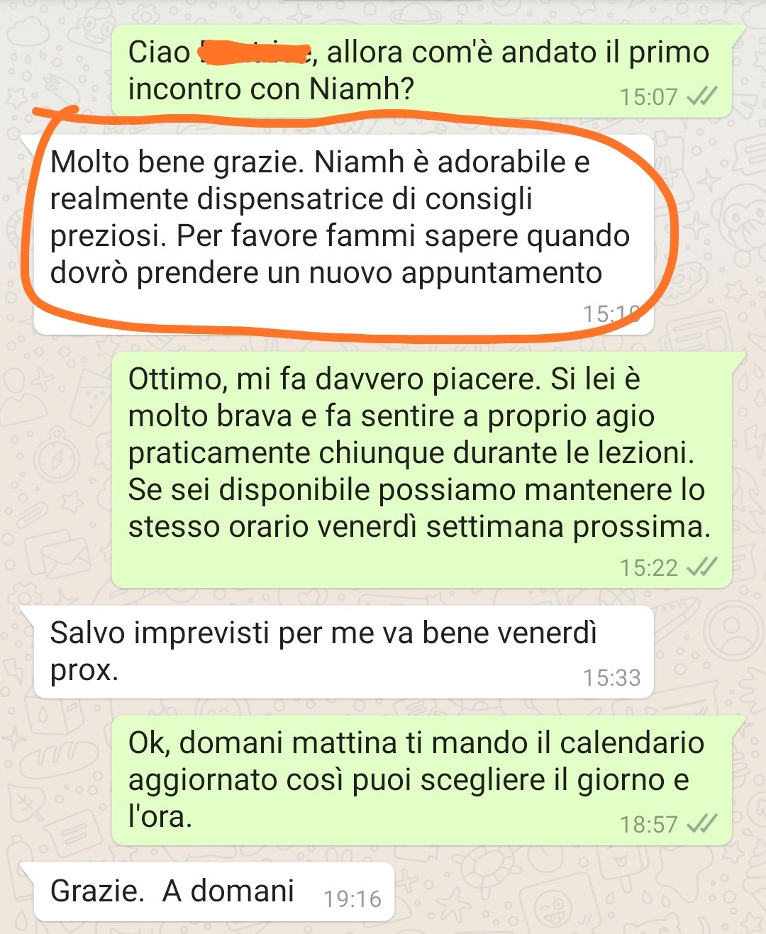 È risaputo che il modo migliore per praticare l'inglese è stare a contatto con un madrelingua. Scegliere Niamh è la miglior cosa che potresti fare! Percentuale di soddisfazione praticamente del 100%